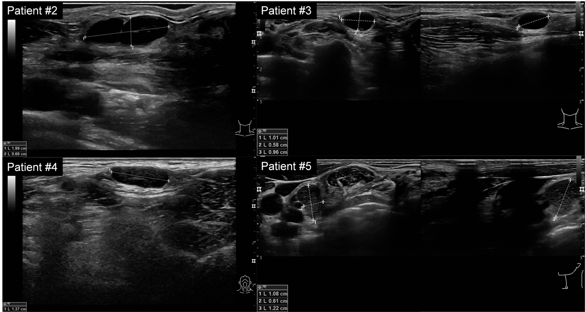 Figure S2 Ultrasound findings of Patients 2–4 showing enlarged ovoid to spherical lymph nodes with loss of hilum.