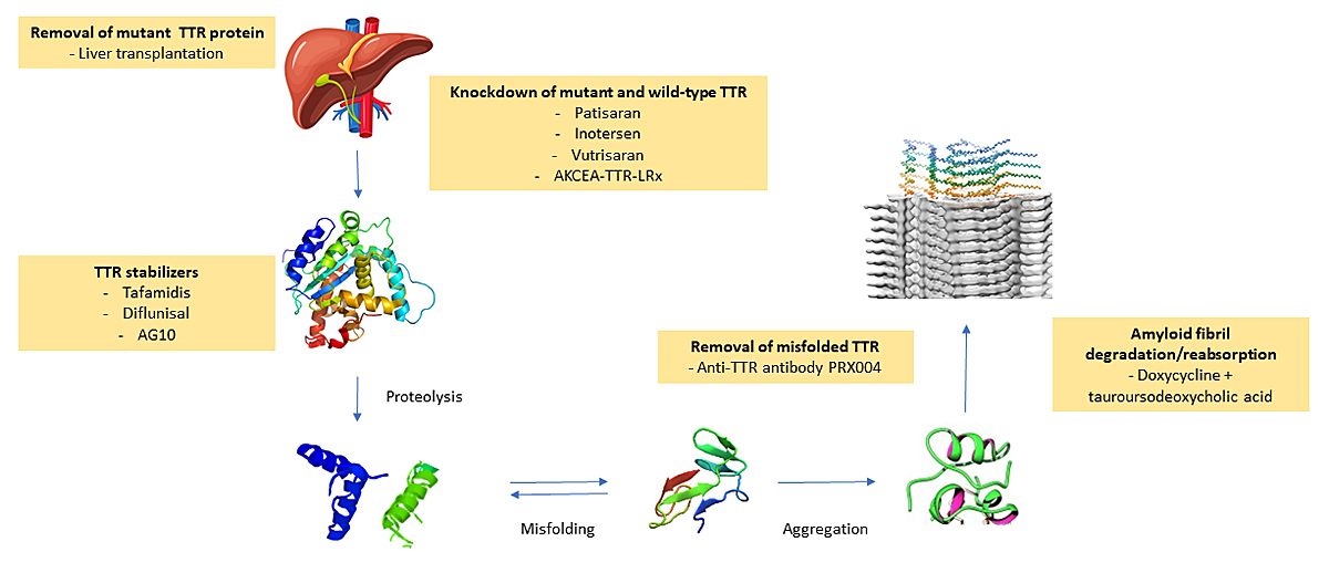 79. Cardoso I , Martins D , Ribeiro T , Merlini G , Saraiva MJ . Synergy of combined doxycycline/TUDCA treatment in lowering Transthyretin deposition and associated biomarkers: studies in FAP mouse models. J Transl Med. 2010 Jul;8(1):74. https://doi.org/10.1186/1479-5876-8-74