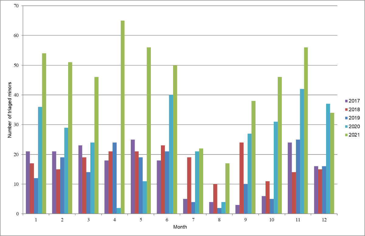 Figure 2 Emergency admissions of minors requiring inpatient treatment in adult psychiatry.