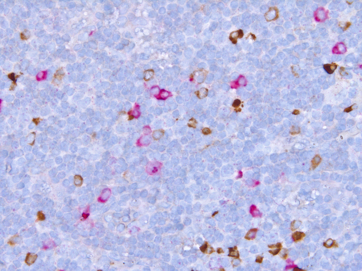 Figure 2 Polyclonal plasmacytosis (kappa brown; lambda red).