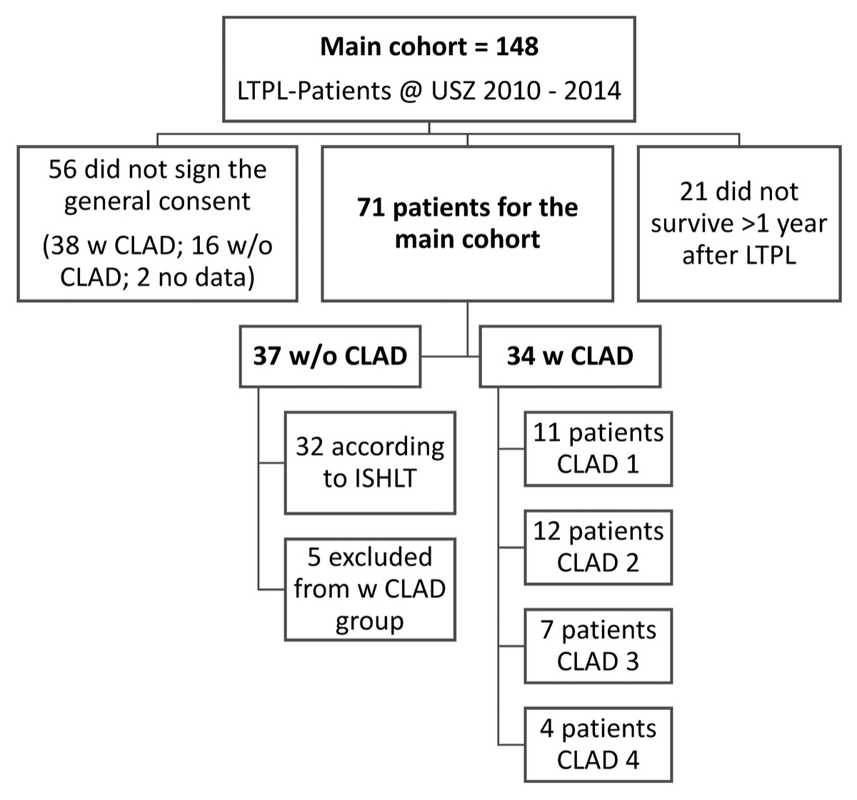 CLAD: chronic lung allograft dysfunction; ISHLT: International Society for Heart and Lung Transplantation; LTPL: lung transplantation; USZ: Universitätsspital Zürich.