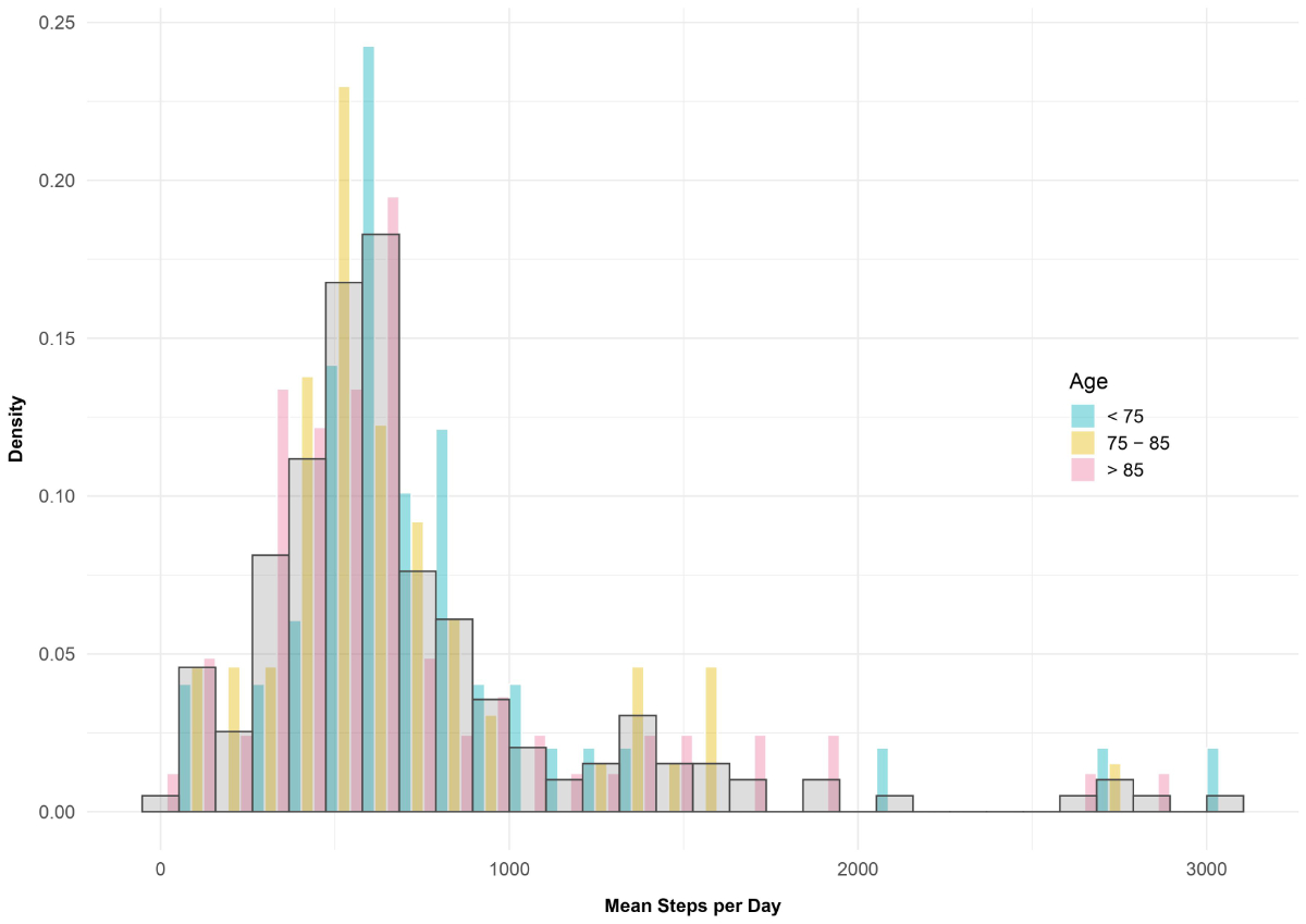 Figure 1 Frequency of mean step per day, stratified by age group.