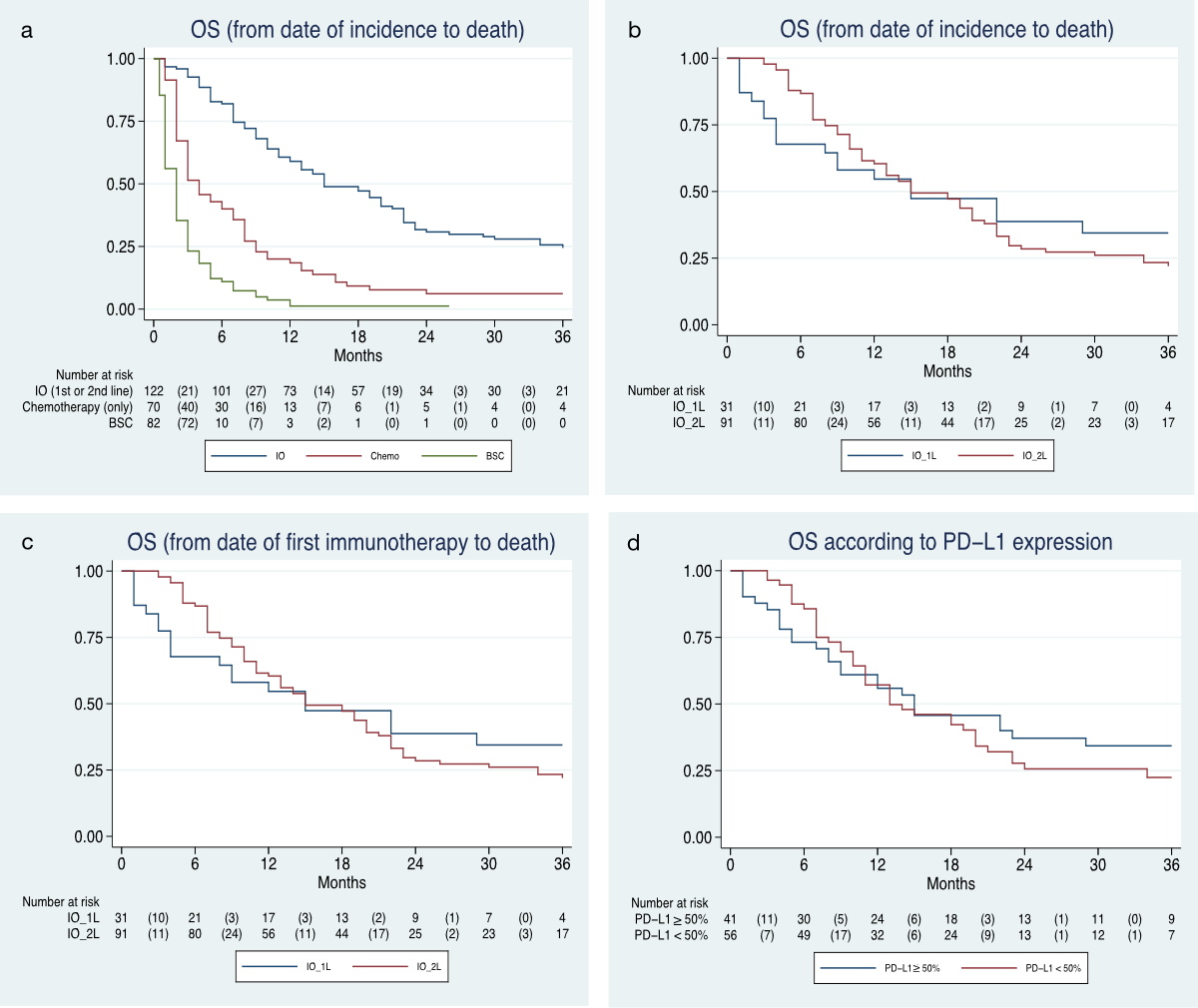 BSC: best supportive care; CPI: checkpoint inhibitor; NSCLC: non-small-cell lung cancer; IO: immuno-oncology; IO_1L: immuno-oncology first line; IO_2L: immuno-oncology first line second line; OS: overall survival; PD-L1: programmed death ligand 1