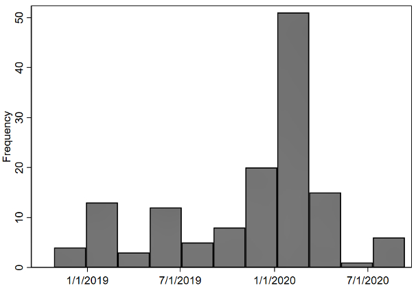 The first 138 children enrolled in the trial were included in the current analysis. The majority of participants were enrolled in autumn and winter 2019/20 (detailed in supplementary figure S1 in the appendix). Thirty (21.7%) were enrolled after detection of the first case of COVID-19 in Switzerland, mostly in March 2020 and only 6 were enrolled between April and September 2020.