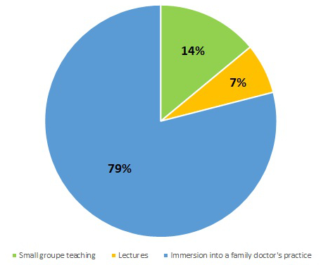 Figure 5 Family medicine teaching methods at the University of Lausanne (% of total number of family medicine teaching hours received).