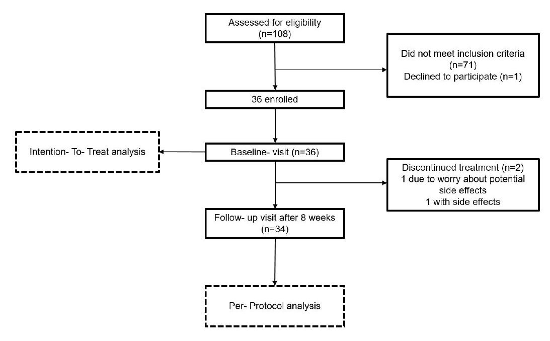 Of the 108 participants screened, 36 met the inclusion criteria (see figure 1).