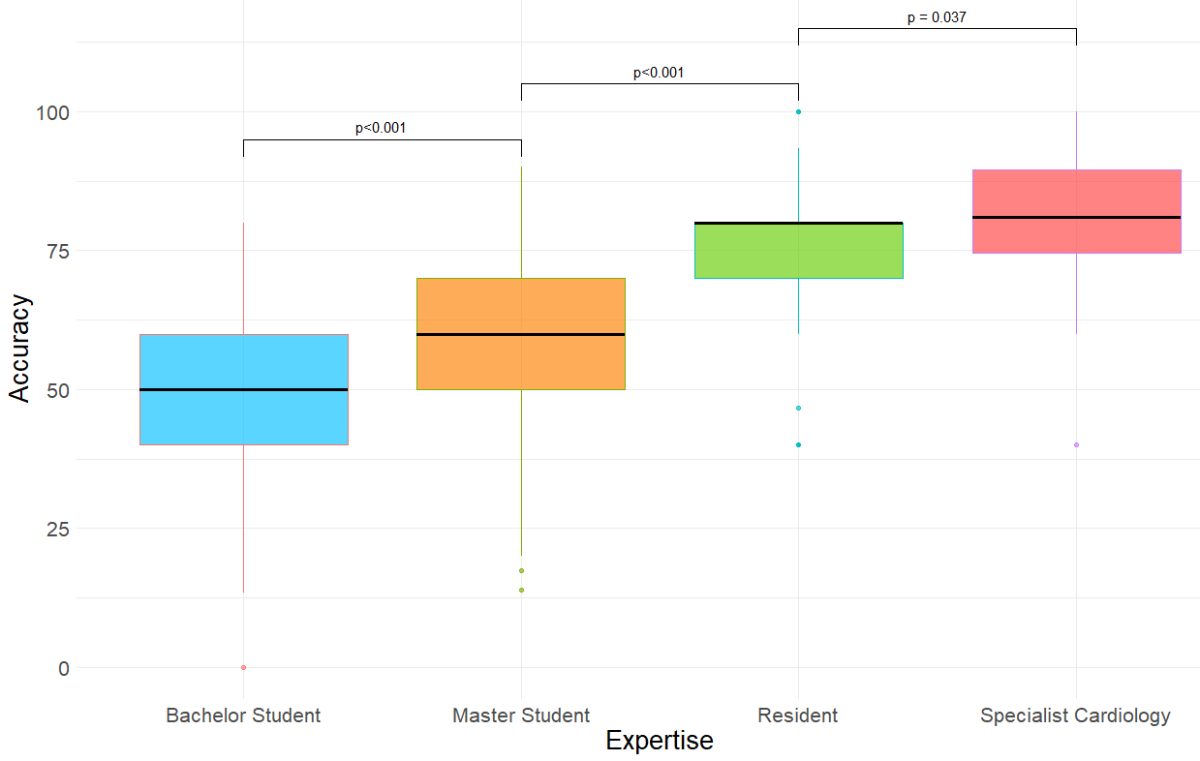 Table 2Overall median accuracy in detecting atrial fibrillation, by level of expertise and overall.