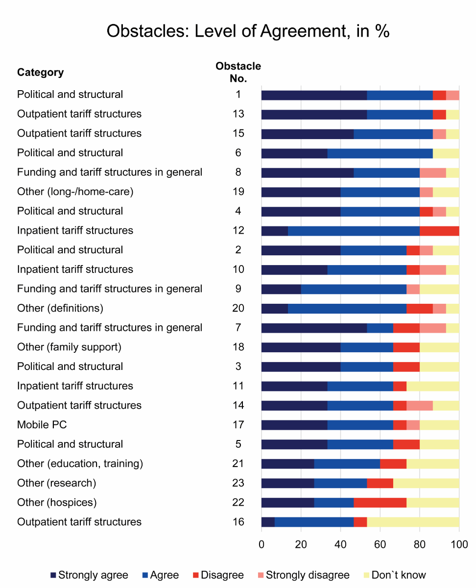 | Outpatient tariff structures | 13. Lack of palliative care*-specific reimbursement codes in outpatient tariff structures | 2× |