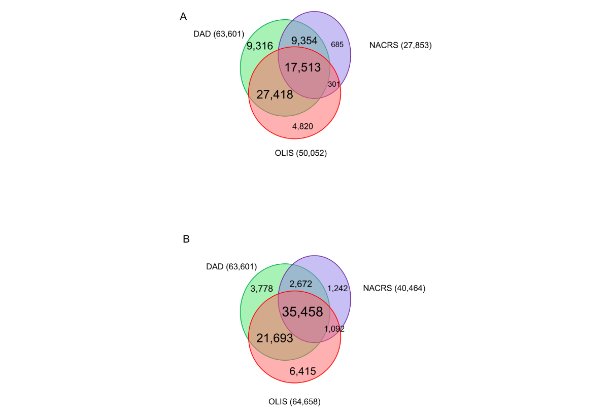 Table S1Agreement between DAD, NACRS and OLIS. n = 2,059,517 admission episodes; Restricted to admission episodes starting between 1 April 2020 (when ICD-10 codes became available for use) and 31 March 2022 (most recent data available).
