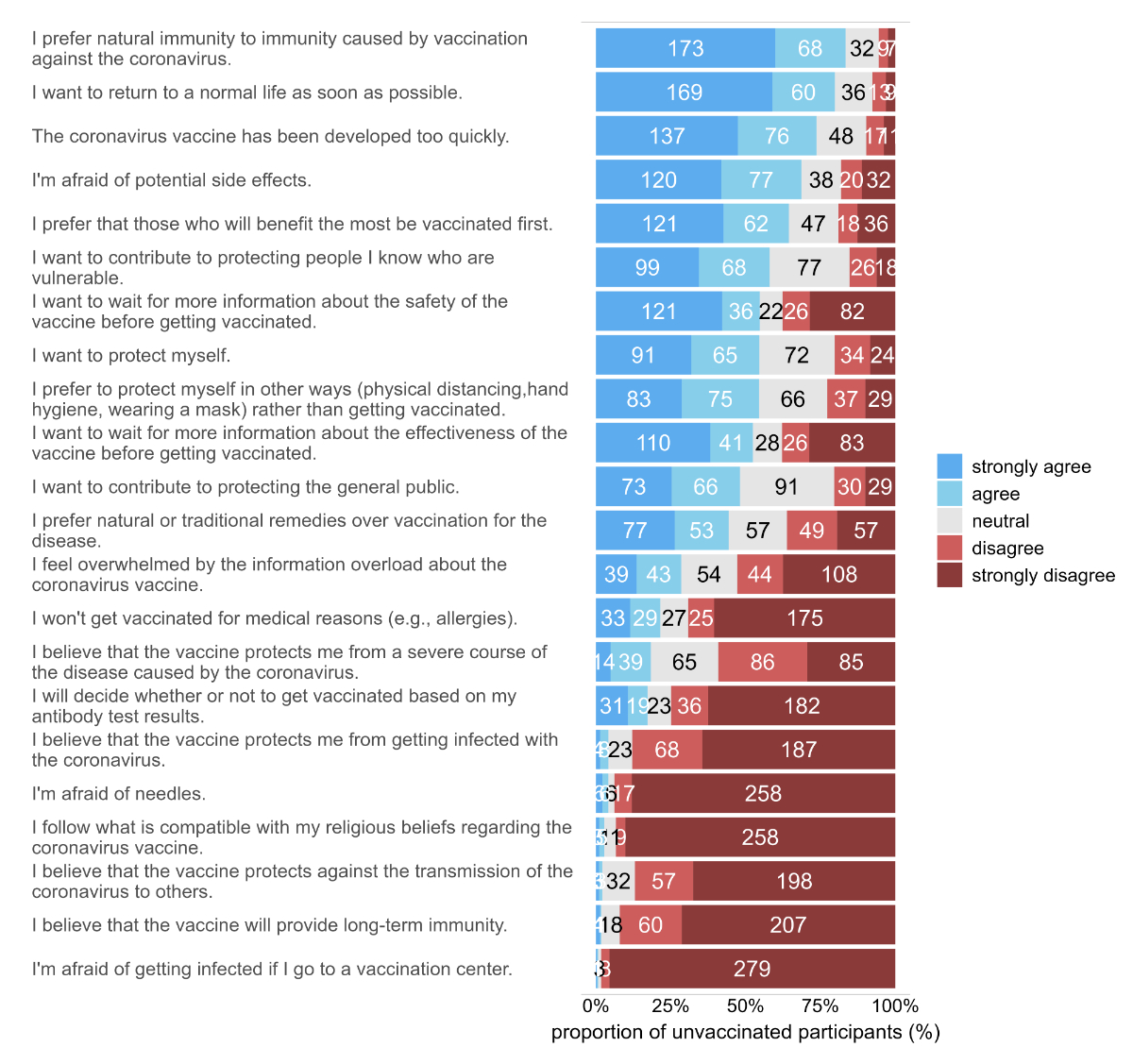 Table S1Questionnaire with 22 statements regarding reasons for vaccine hesitancy. Answer options are “strongly agree”, “agree”, “neutral”, “disagree”, “strongly disagree”.