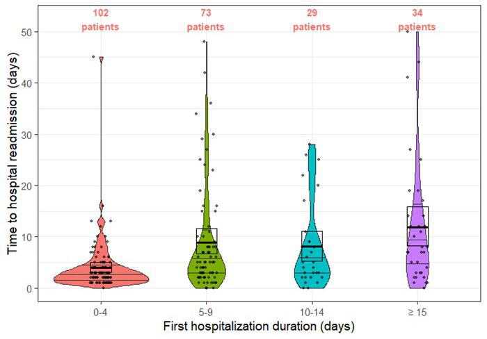 Patients with an initially short index hospital stay had a significantly higher risk of being readmitted [14, 22]. This seems to be a common observation once sufficient sample size is considered [34]. Others describe the disease course as a biphasic phenomenon starting with a mild clinical presentation, allowing for discharge, and later evolving into a worsened state [32]. Early discharge can also be frequent in moments of hospital saturation when resources are insufficient to handle the number of patients [14]. It is known that hasty discharges before the severity peak or complete recovery favour readmissions [35]. Readmissions could also relate to post-discharge care systems. In some health facilities, management of patients after discharge can be poorer than preventive hospital measures [14]. Although administrative prioritisations aim to reduce both length of stay and readmissions, these two goals seem inversely related [22].