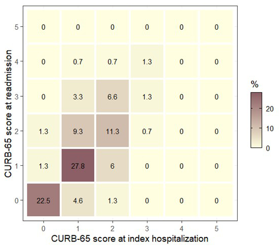 CURB-65 score at readmission | 0 | 72 (30.1%) |