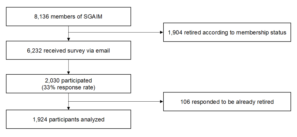 2 As described in the study flowchart, all retired SGAIM members (n = 1,904) were excluded