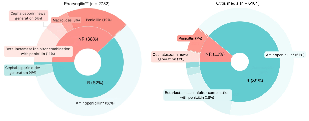 | Clinical indication (reference: otitis) | Pharyngitis | 2.77 | 2.55–3.02 | <0.001 | 3.15 | 2.81–3.53 | <0.001 |