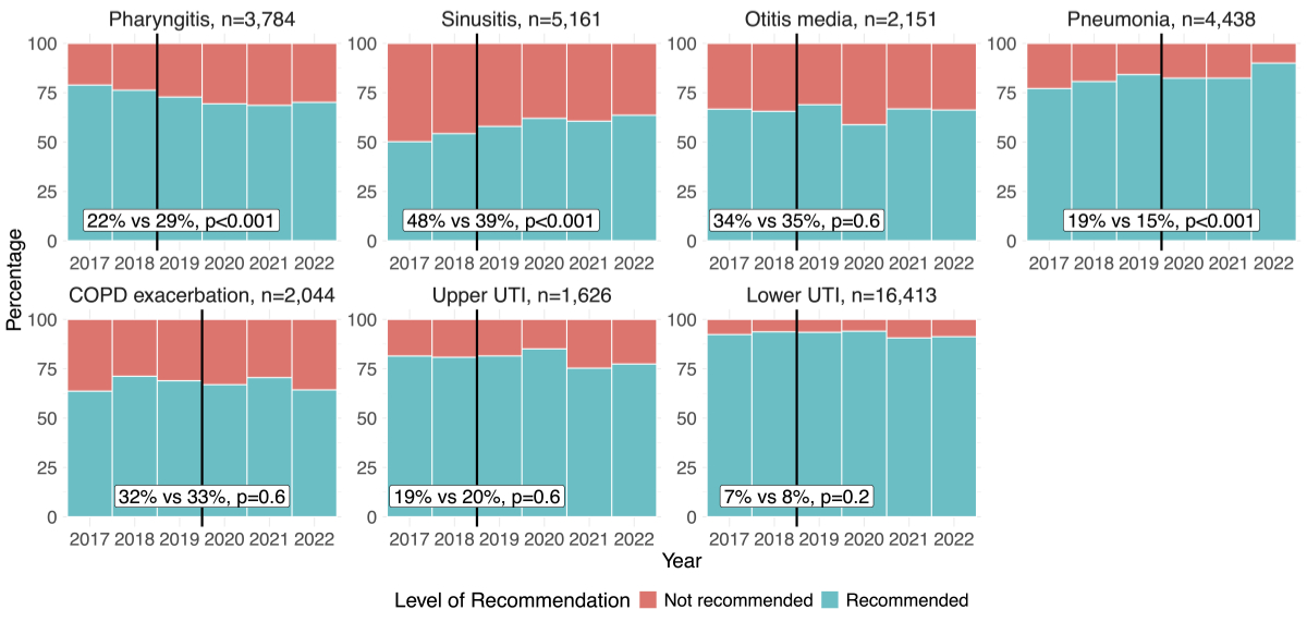 40. Chua KP, Fischer MA, Rahman M, Linder JA. Changes in the Appropriateness of US Outpatient Antibiotic Prescribing After the COVID-19 Outbreak: An Interrupted Time Series Analysis of 2016-2021 Data. Clin Infect Dis. 2024 Aug;79(2):312–20. doi: https://doi.org/10.1093/cid/ciae135