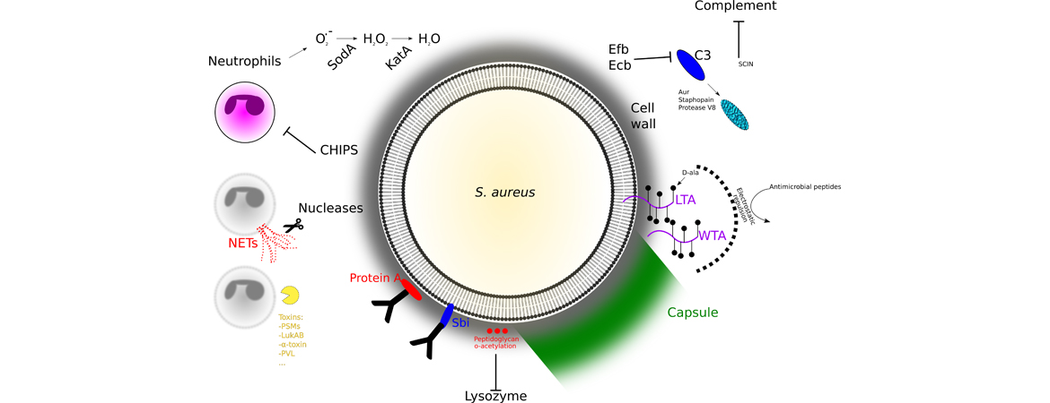 - Jongerius I, von Köckritz-Blickwede M, Horsburgh MJ, Ruyken M, Nizet V, Rooijakkers SH. Staphylococcus aureus virulence is enhanced by secreted factors that block innate immune defenses. J Innate Immun. 2012;4(3):301–11. doi:.https://doi.org/10.1159/000334604